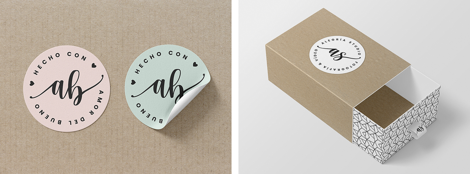 La identidad corporativa para Alegría Studio busca una línea de diseño limpia, elegante y femenina. En el logotipo empleamos una tipografía principal manuscrita que transmite personalidad y artesanía. La complementa una sin serif que equilibra el conjunto aportando seriedad. El isotipo destaca las iniciales “AS” en un diseño tipo sello, que podrá ser fácilmente adaptado a aplicaciones de la marca en forma de pegatinas, estampaciones, etc.